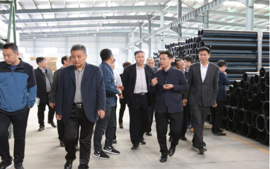 傅局長等先后參觀了公司生產車間、管材倉庫、原料倉庫、產品展廳等,過程中對公司生產原料、設備、產品標識等情況進行檢查交流,對河財管道發展規模、質量管理等各方面工作給予了高度評價。